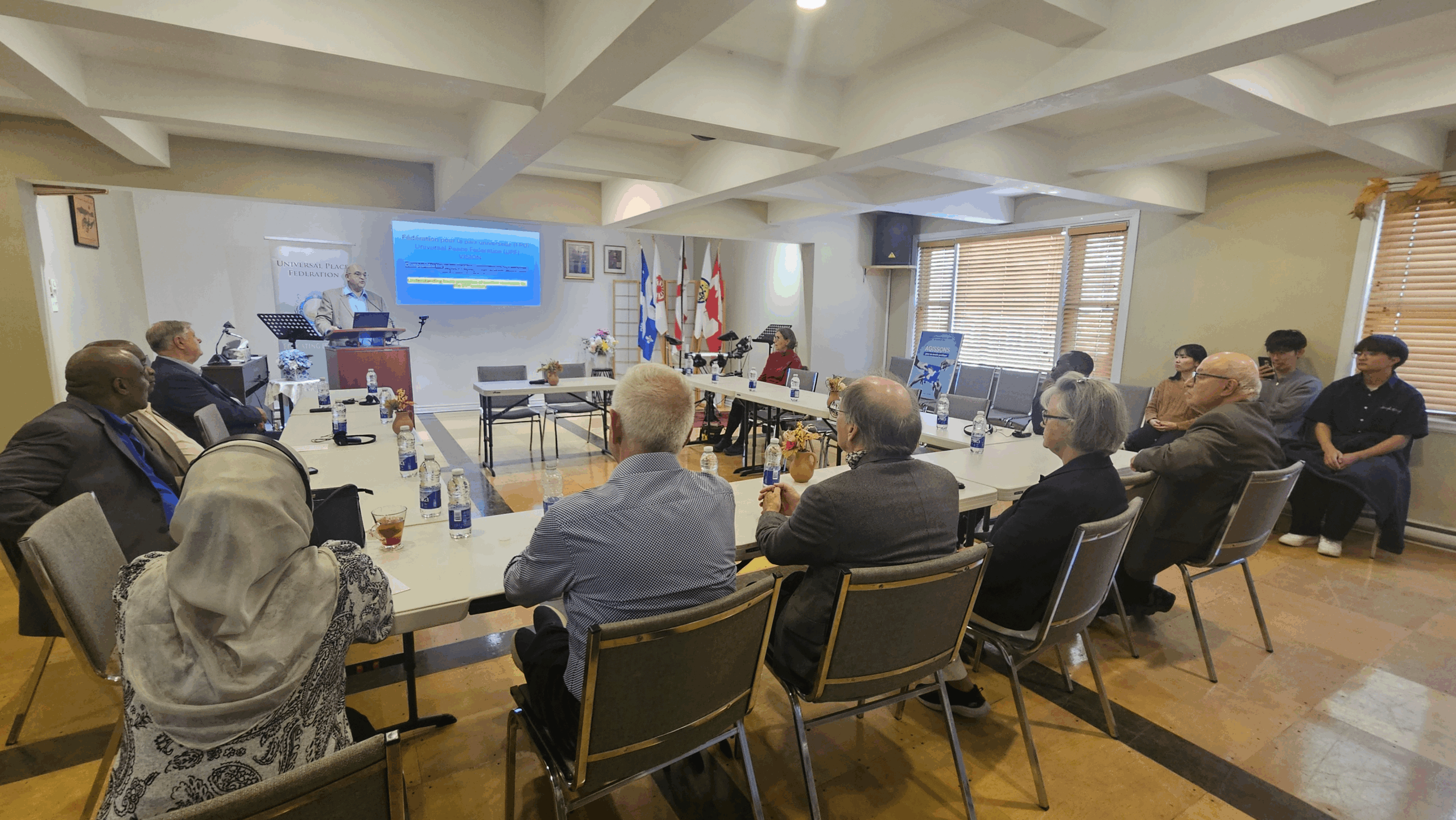 Outlining UPF’s global and Canadian strategies to support our common responsibility for peace and highlighting the central global challenge of our age – the crisis of worldviews, one based on faith and the other on non-faith – he concluded with a call for human solidarity, unity in diversity, and one human family under the Divine/the Ultimate/God.